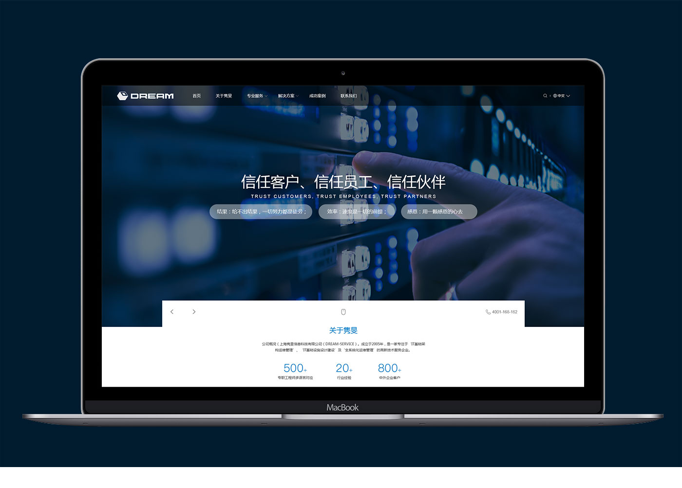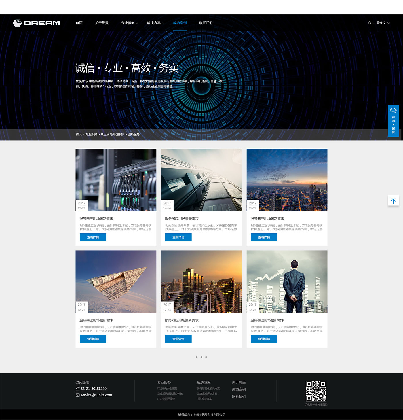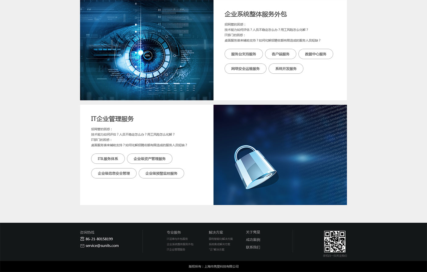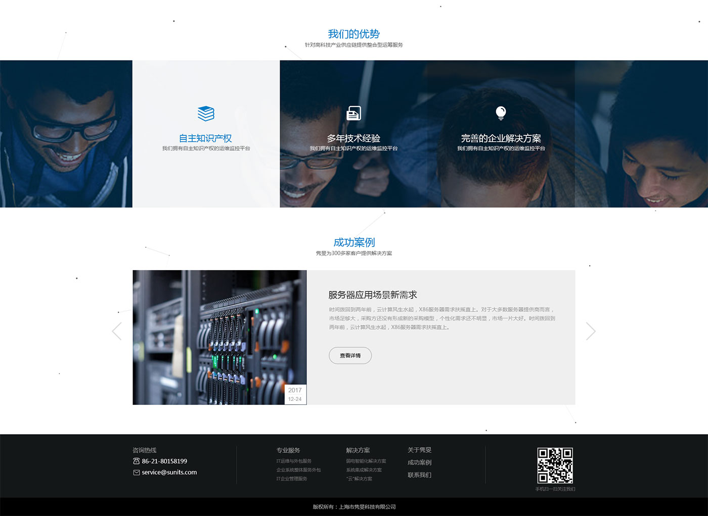 助騰服務毅雋旻信息科技官網設計開發,通過與客戶的前期溝通和梳理,并通過整合以及重新編排內容,使信息的主次更顯而易見。你可以看到一個更簡約、直觀的但是卻不失內容和主題的完整的網站設計;用戶在瀏覽頁面頁面時能夠更簡單的找到自己想要的產品和內容。減的是“冗雜”,加的是更符合用戶體驗的整體視覺和主次明了的清晰架構。