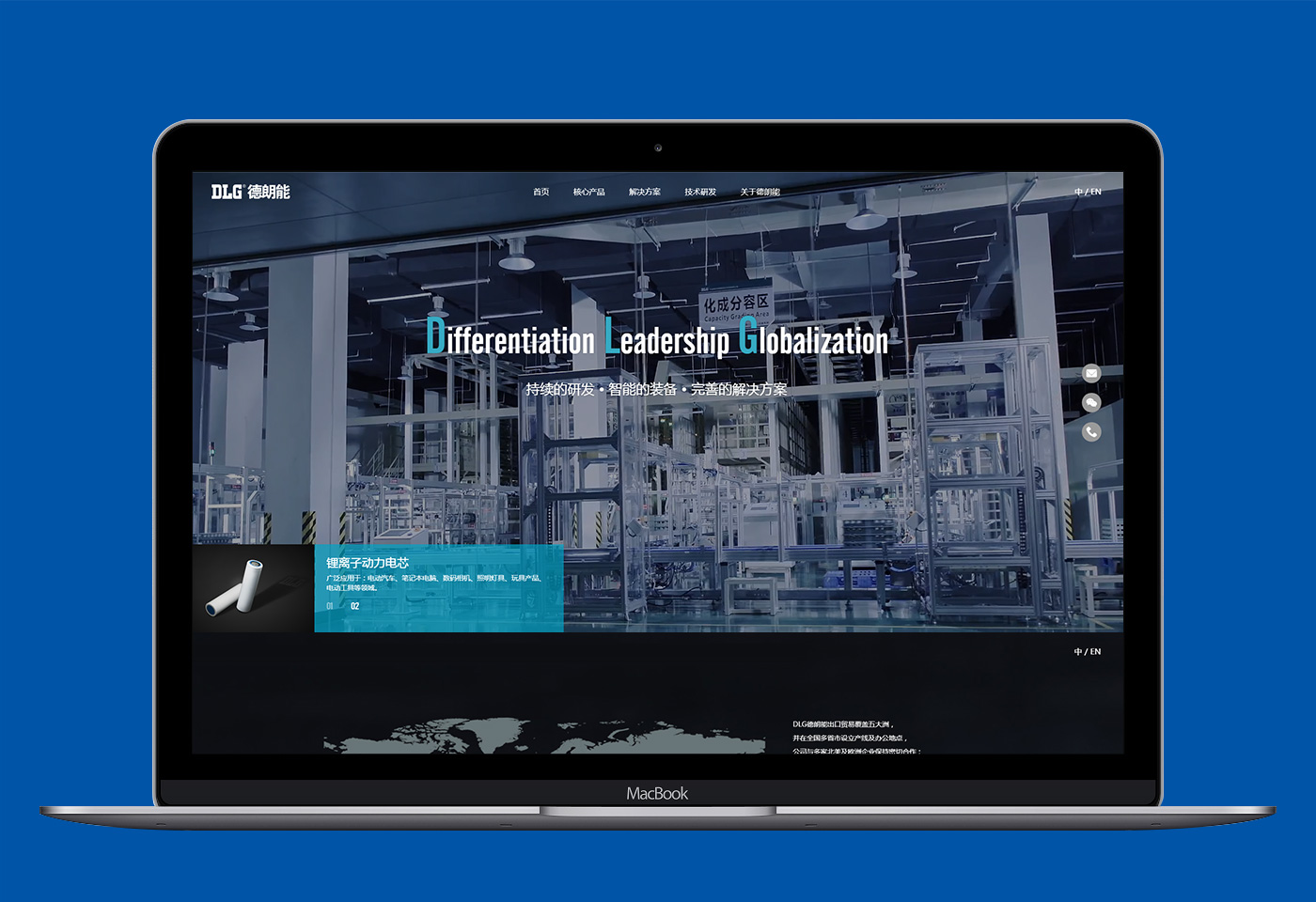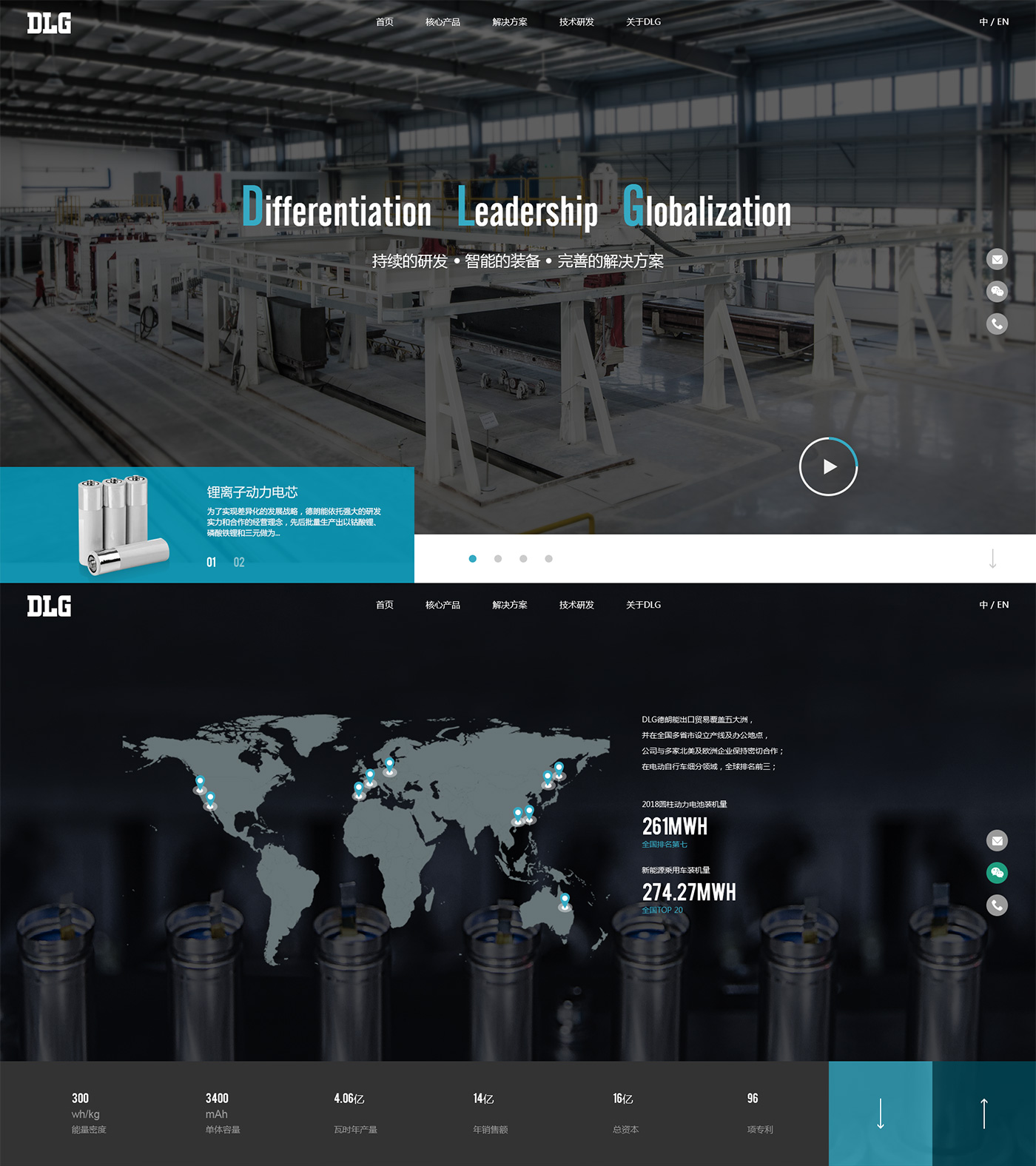 助騰服務DLG網站建設,DLG基于電芯制造的核心技術,提供定制化綠色能源解決方案,產業涵蓋動力鋰離子電池、電池控制系統、民用電池及相關產品的研發、設計、生產、銷售及服務。