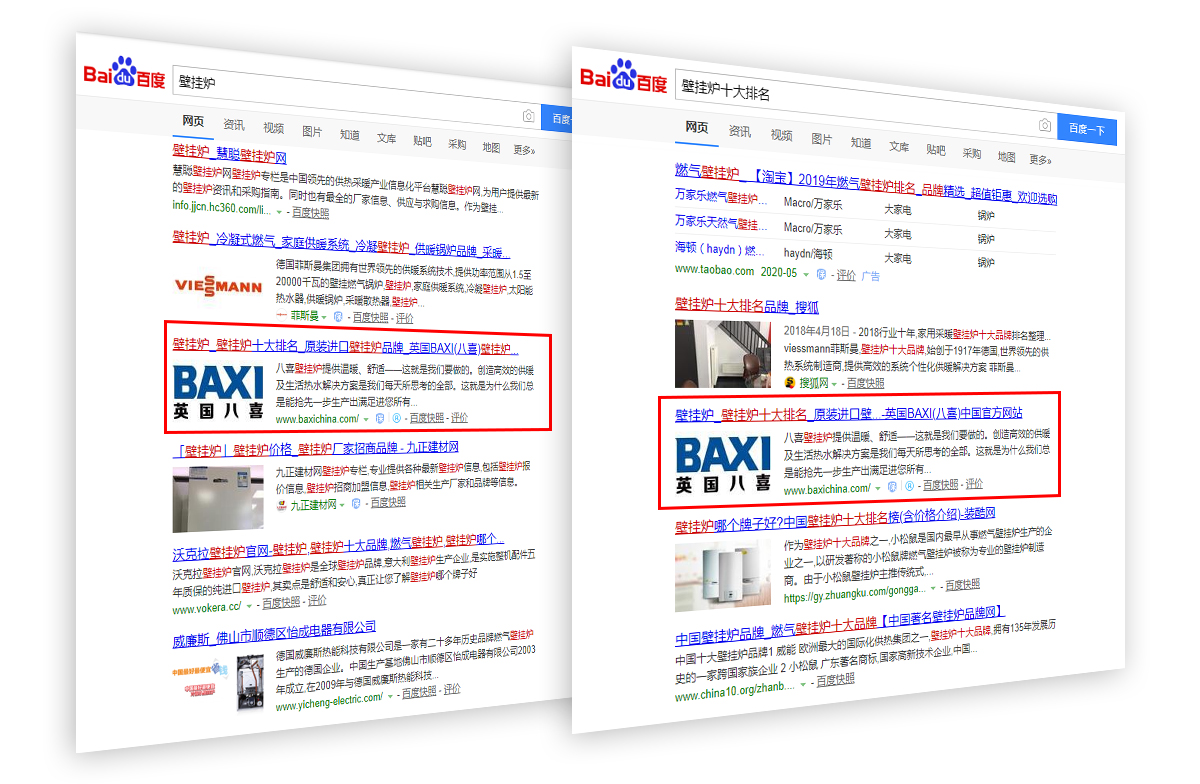 | 壁掛爐 | 百度 | 項目操作之前 網站月均訪問UV: 1025左右 項目操作之后 網站月均訪問UV: 3620左右 |