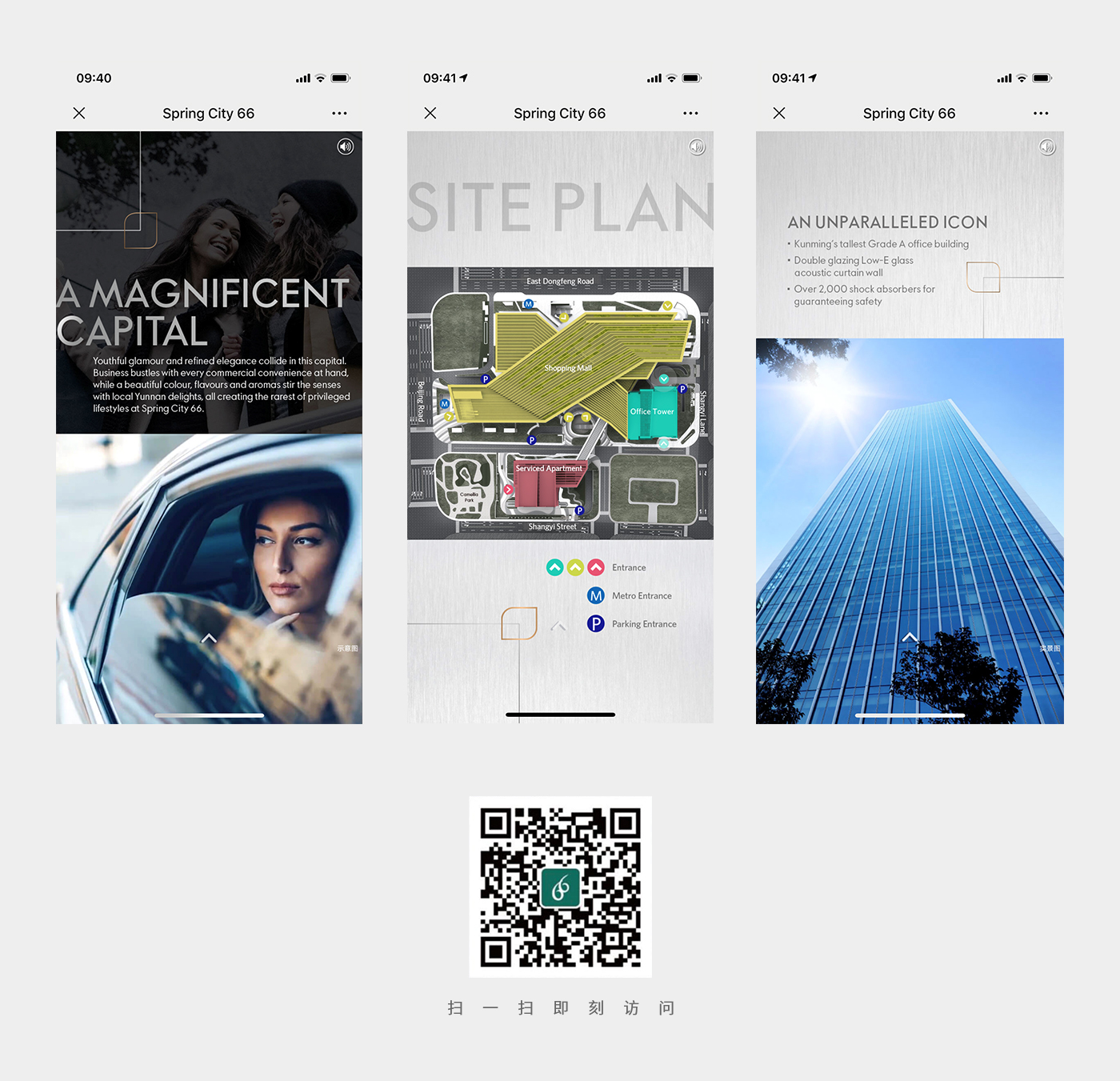整體設計H5動態(tài)展示體現(xiàn)恒隆地產(chǎn)品牌,通過H5使用用戶能夠快速的了解恒隆廣場,以平面的場景思維導圖展示恒隆廣場的多樣性和豐富性。整體風格簡潔明了,以動態(tài)的交互方式使用戶在瀏覽時為之眼前一亮的感覺,促使用戶的瀏覽欲望。