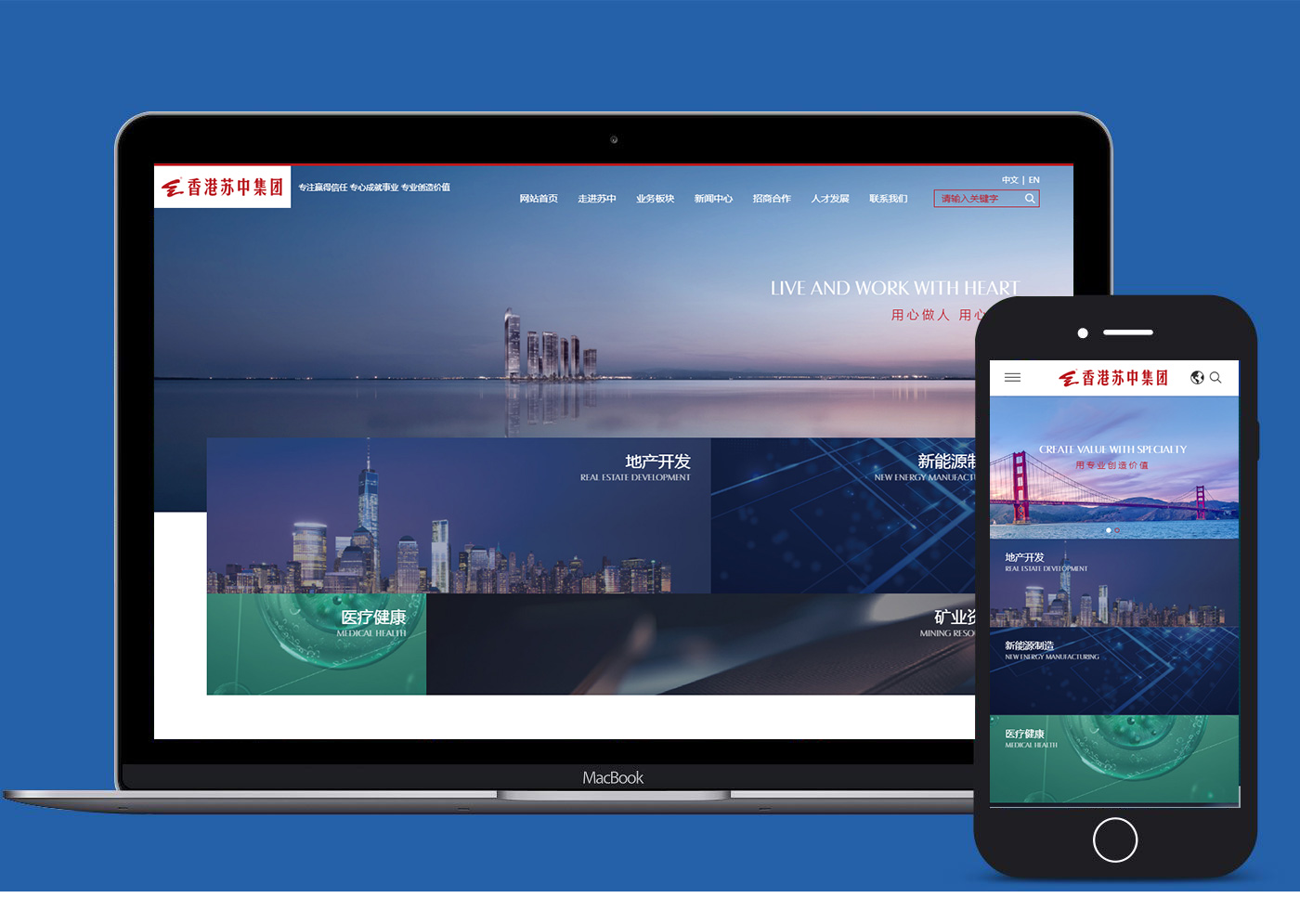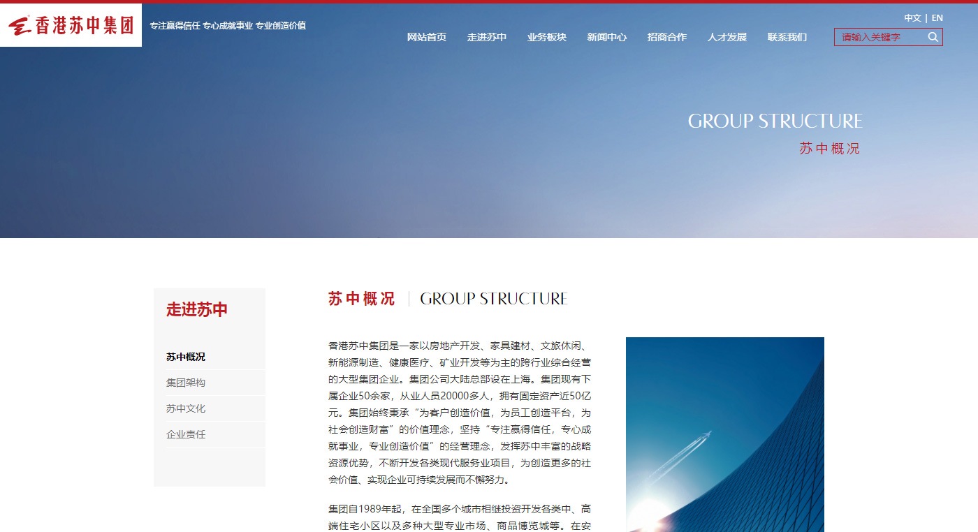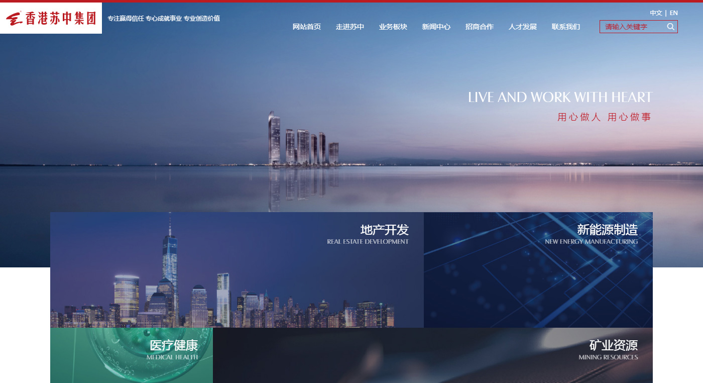 蘇中集團官網改版,符合國內用戶群體瀏覽習慣。 網站整體嚴謹和品牌色調體現出蘇中安全可靠,更具集團特色。