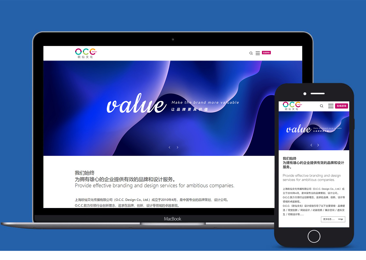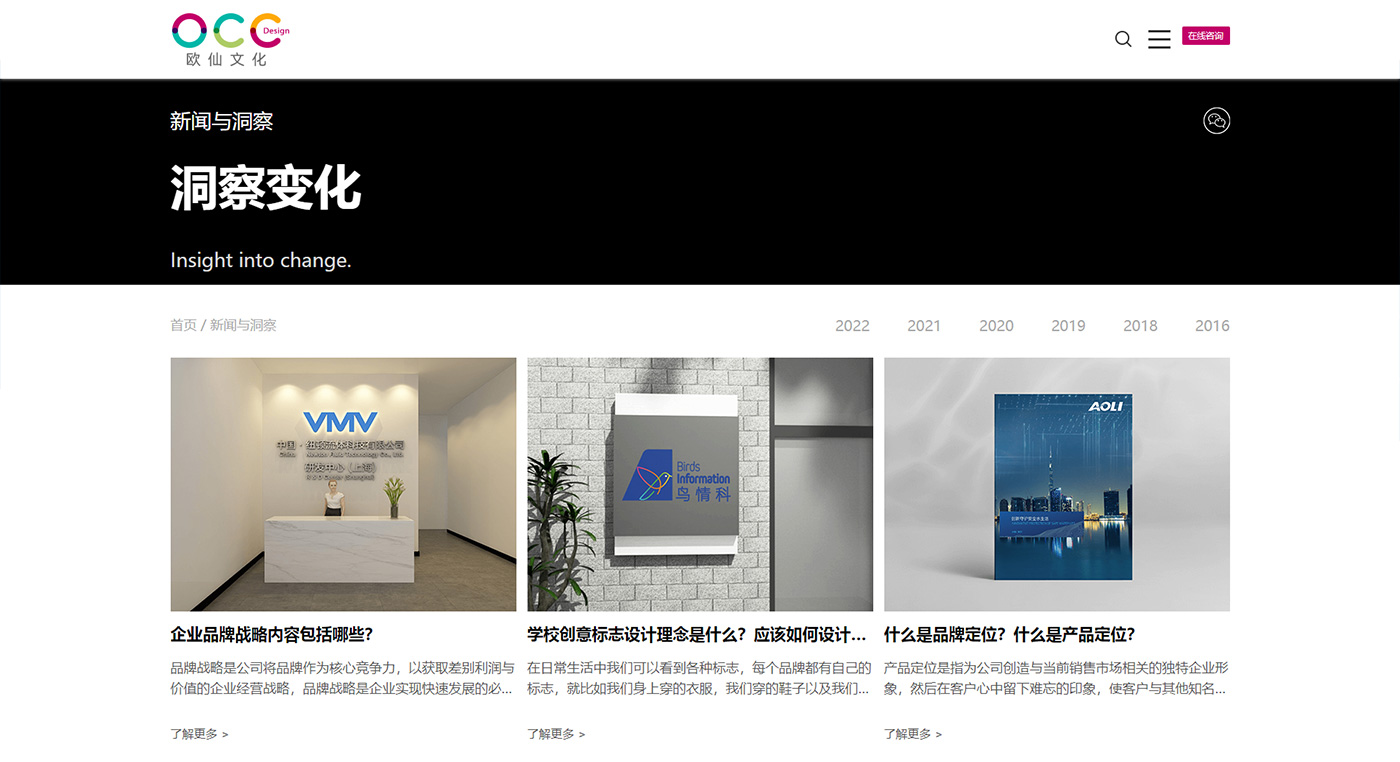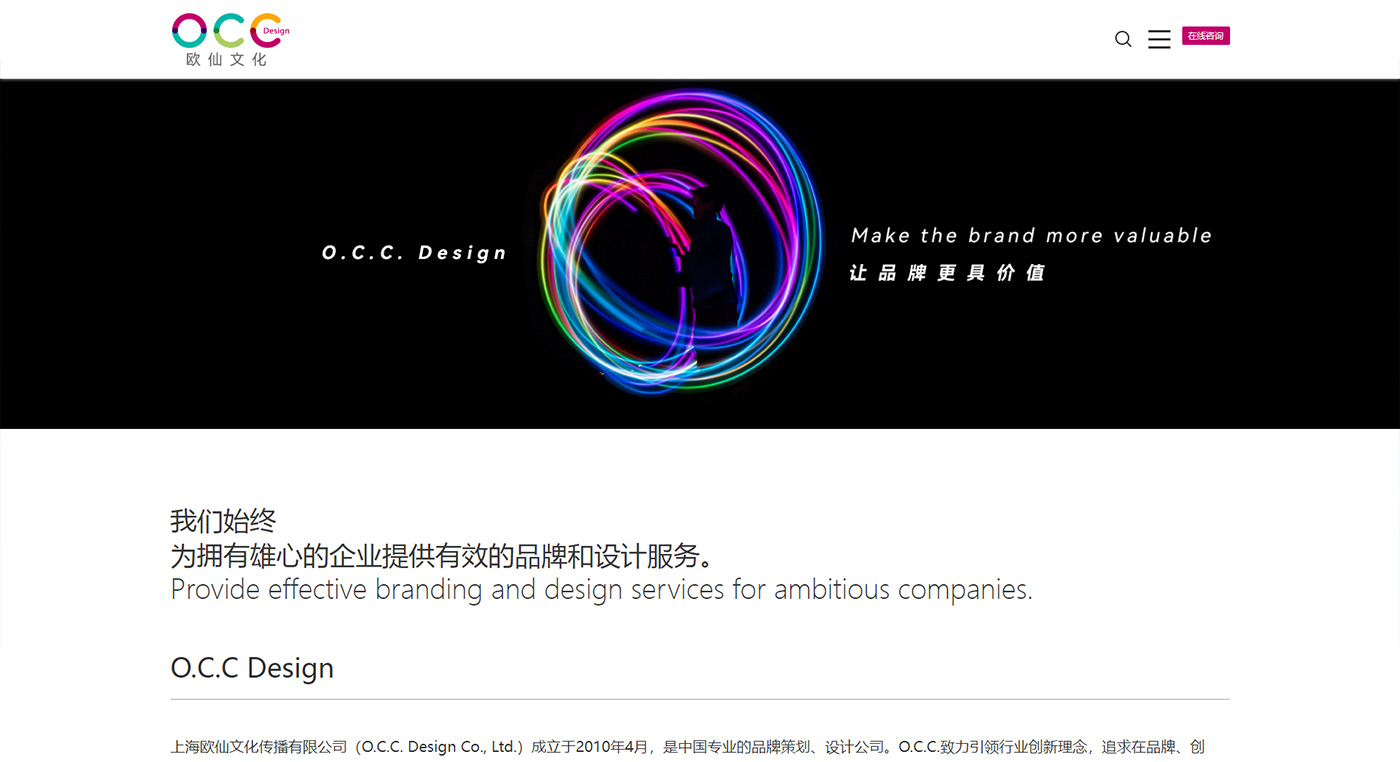 上海歐仙文化是中國專業的品牌策劃、設計公司,致力引領行業創新理念,追求在品牌、創新、設計等領域的卓越表現。設計經驗引導了以下主要領域:品牌塑造、視覺創新、動畫視頻、展示空間、虛擬交互、印刷設計等