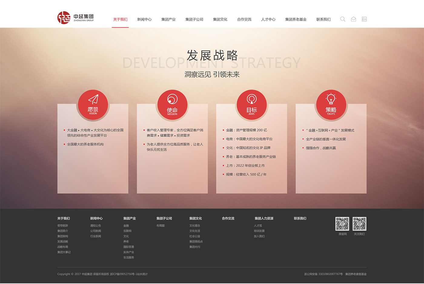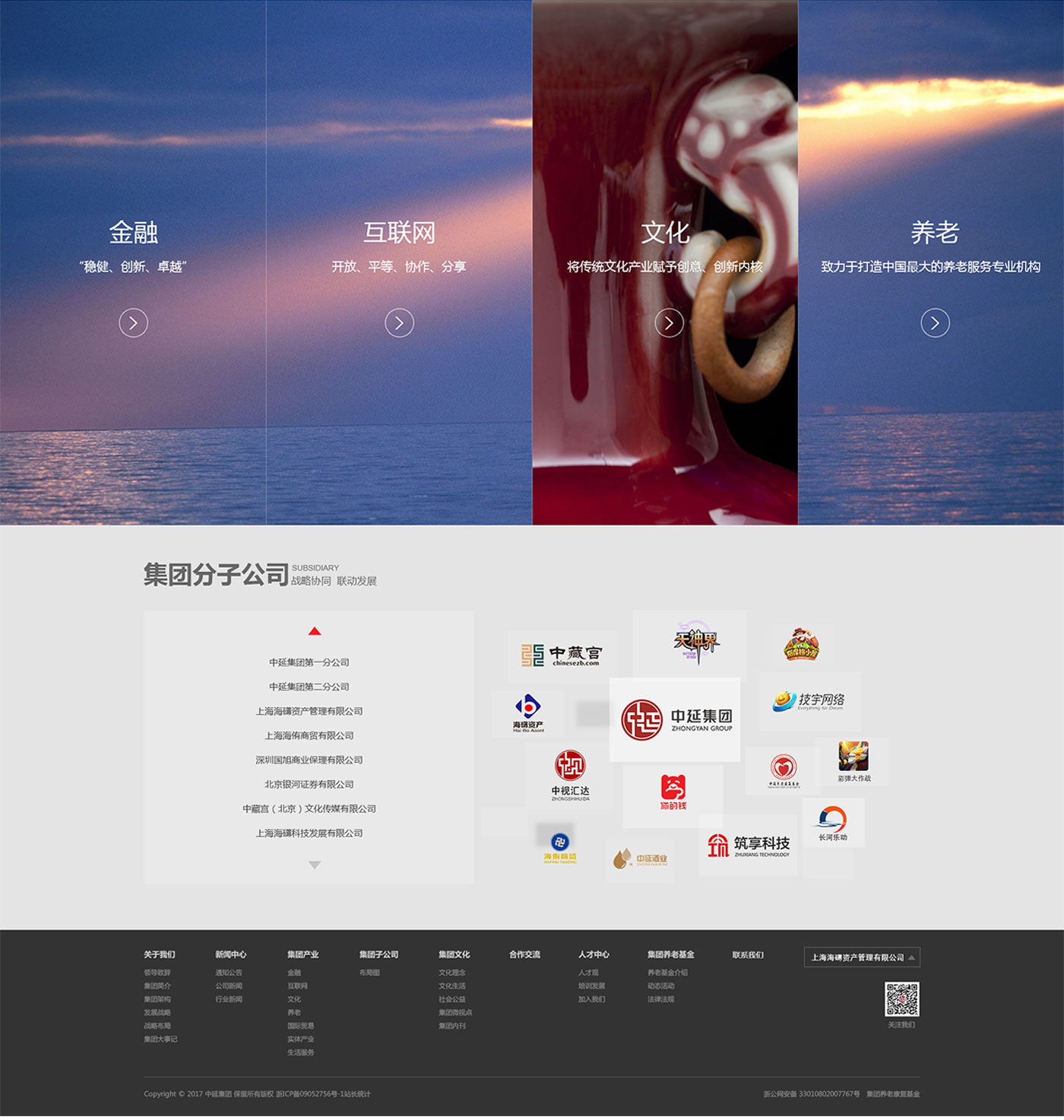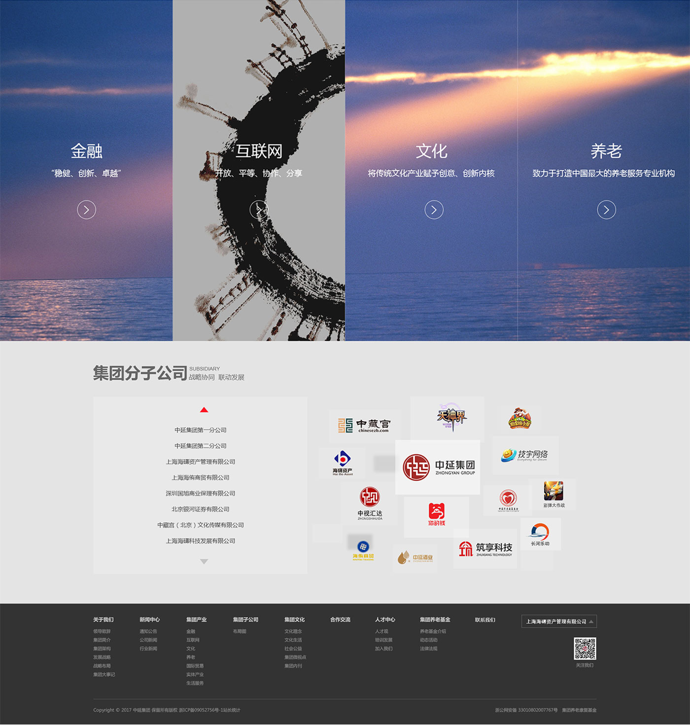 助騰服務某集團網站建設,中延是一家以互聯網+產業+證券的一家創新發展公司,通過前期對某集團的產業和公司架構的梳理,開始網站的規劃,欄目架構重點區分,某集團清晰的呈現,使人能快速的了解到某集團是一家什么樣的企業,和某集團公司的實力,產業分布都清晰明了的在網站中體現。