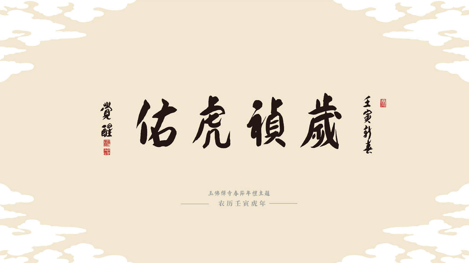 2022年漸漸臨近,按照傳統歷法,將進入壬寅年虎年。覺醒大和尚再次沐手恭書,以“歲禎虎佑”為主題,為大眾書寫壬寅年的新春祝福。 在佛教故事中,不少高僧都曾以德行感召猛虎為護法。在民俗中,也常以虎的形象驅邪避兇,例如給孩童穿虎頭鞋、戴虎頭帽,端午剪艾虎佩戴以辟邪祟,禳災除難,祈求平安。