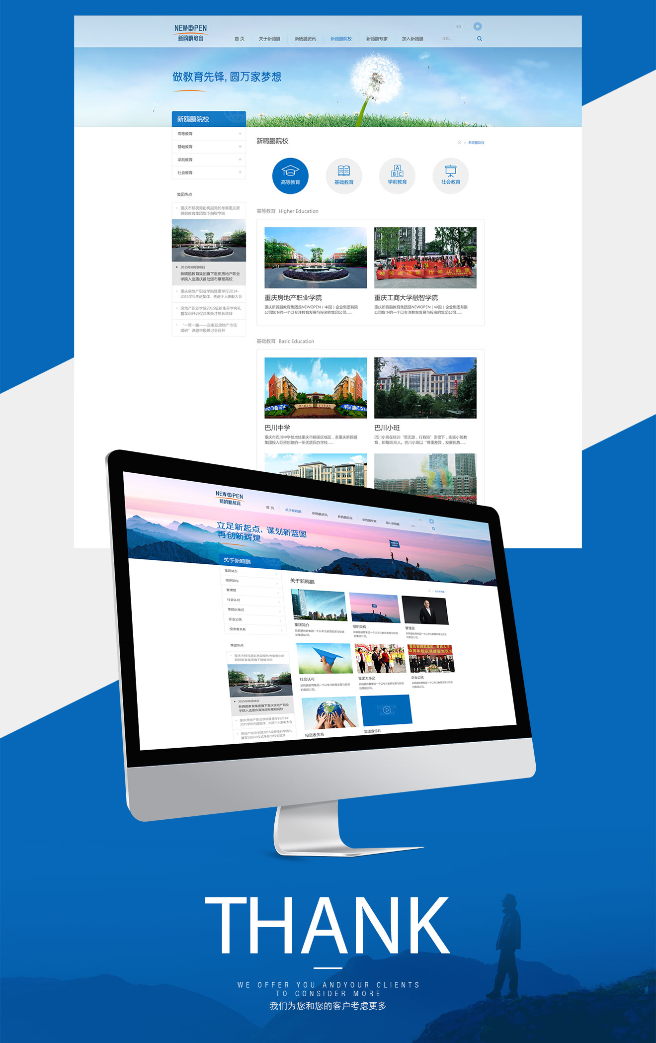 新鷗鵬集團(tuán)業(yè)務(wù)涵蓋教育產(chǎn)業(yè)投資,地產(chǎn)住宅開發(fā)和物業(yè)服務(wù)。是中國最具價值影響力的教育集團(tuán)企業(yè)之一。針對本次官網(wǎng)建設(shè)項目,除了在展現(xiàn)教育集團(tuán)實(shí)力方面,新鷗鵬更注重的是深化其"做教育先鋒,圓萬家夢想"的品牌理念。在網(wǎng)站設(shè)計和前端效果實(shí)現(xiàn)上做了新的嘗試和突破,細(xì)節(jié)表現(xiàn)沿用VI輔助圖形,傳達(dá)一種與眾不同、耳目一新的視覺及體驗。