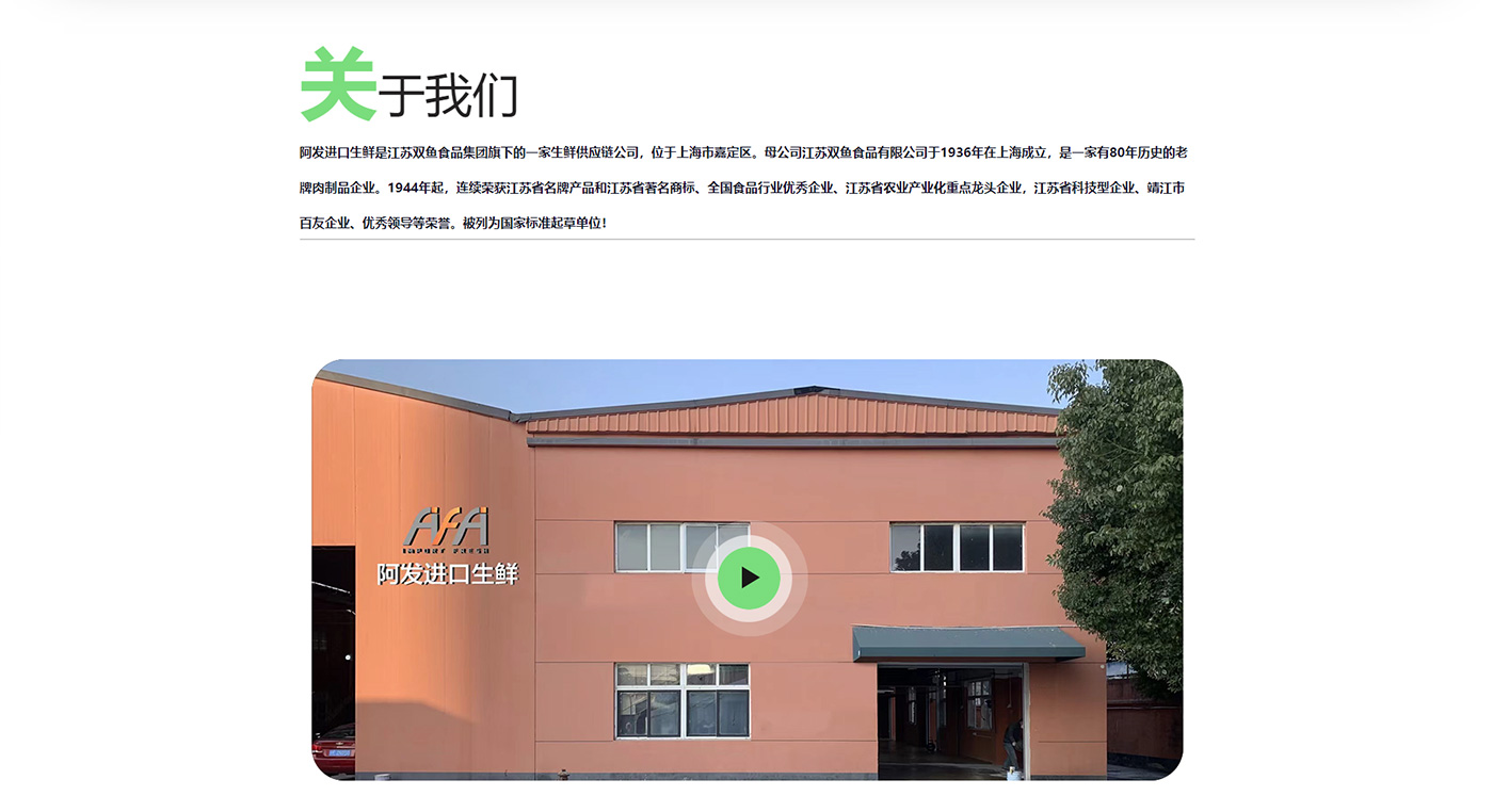 阿發(fā)進口生鮮是江蘇雙魚食品集團旗下的一家生鮮供應鏈公司,位于上海市嘉定區(qū)。母公司江蘇雙魚食品有限公司于1936年在上海成立,是一家有80年歷史的老牌肉制品企業(yè)。1944年起,連續(xù)榮獲江蘇省名牌產(chǎn)品和江蘇省著名商標、全國食品行業(yè)優(yōu)秀企業(yè)、江蘇省農(nóng)業(yè)產(chǎn)業(yè)化重點龍頭企業(yè),江蘇省科技型企業(yè)、靖江市百友企業(yè)、優(yōu)秀領導等榮譽。被列為國家標準起草單位!