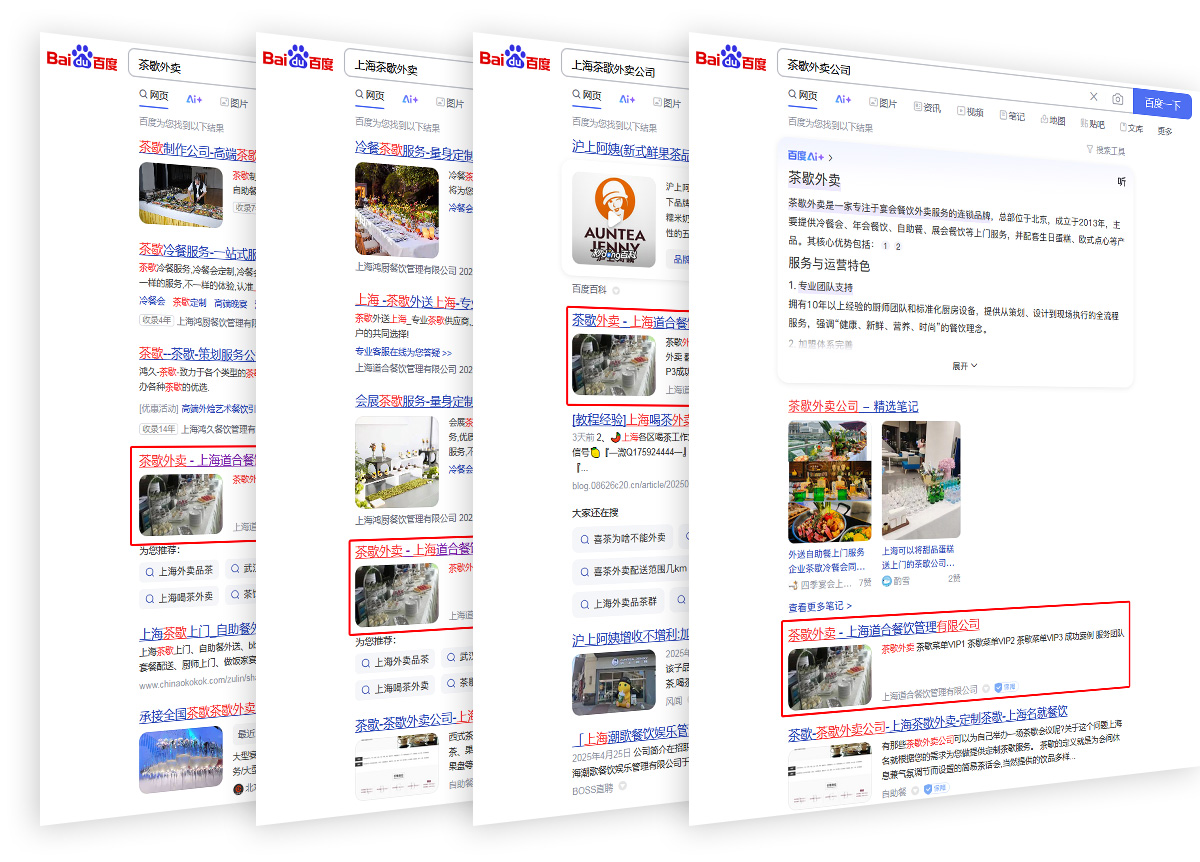 上海助騰為道合餐飲量身打造專業SEO優化方案,聚焦“茶歇外賣”、“上海茶歇外賣”、“上海茶歌外賣公司”、“茶歇外賣公司”等核心關鍵詞,全面提升品牌在搜索引擎中的自然排名與曝光度。通過精準的關鍵詞布局、內容優化及技術調整,助力道合餐飲在茶歇外賣細分市場中建立更強的品牌影響力,吸引更多企業活動、商務會議及私人聚會的餐飲服務需求客戶,進一步鞏固其在上海高端餐飲外送領域的領先地位,同時展現上海助騰在行業SEO策略上的深度能力與實戰成果。