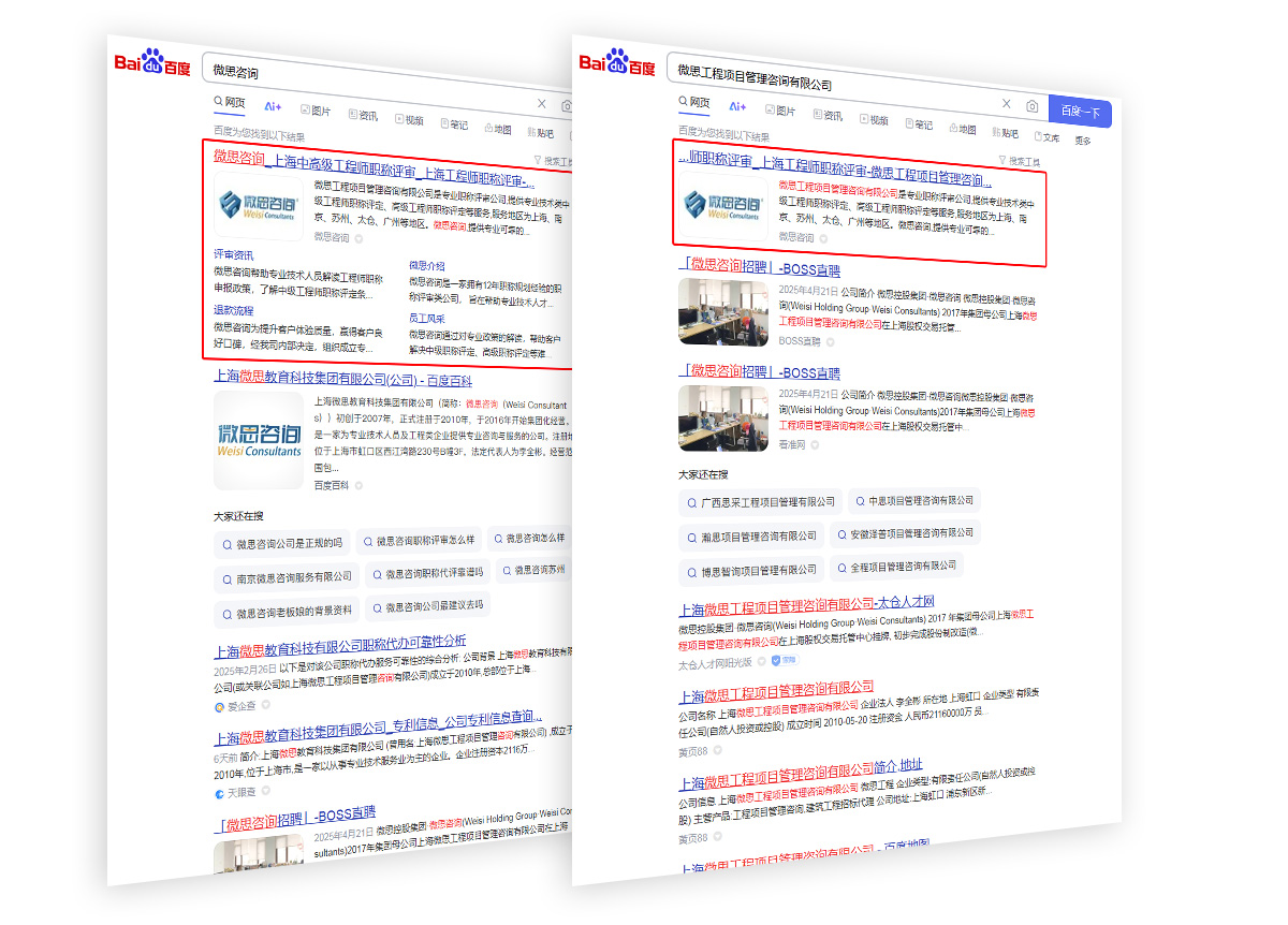 上海助騰為微思咨詢量身打造專業SEO優化方案,聚焦“微思咨詢”、“微思工程項目管理咨詢有限公司”、“工程師職稱評審”、“職稱評審服務”等核心關鍵詞,全面提升品牌在搜索引擎中的自然排名與行業曝光度。通過精準的關鍵詞布局、高質量內容建設及網站技術優化,助力微思咨詢在工程師職稱服務領域持續領跑,增強品牌在網絡端的專業影響力和客戶信任度。
