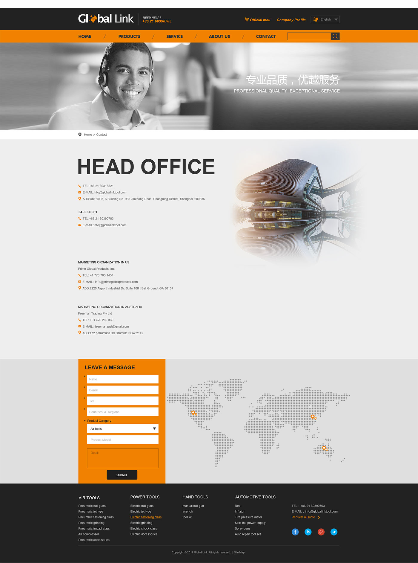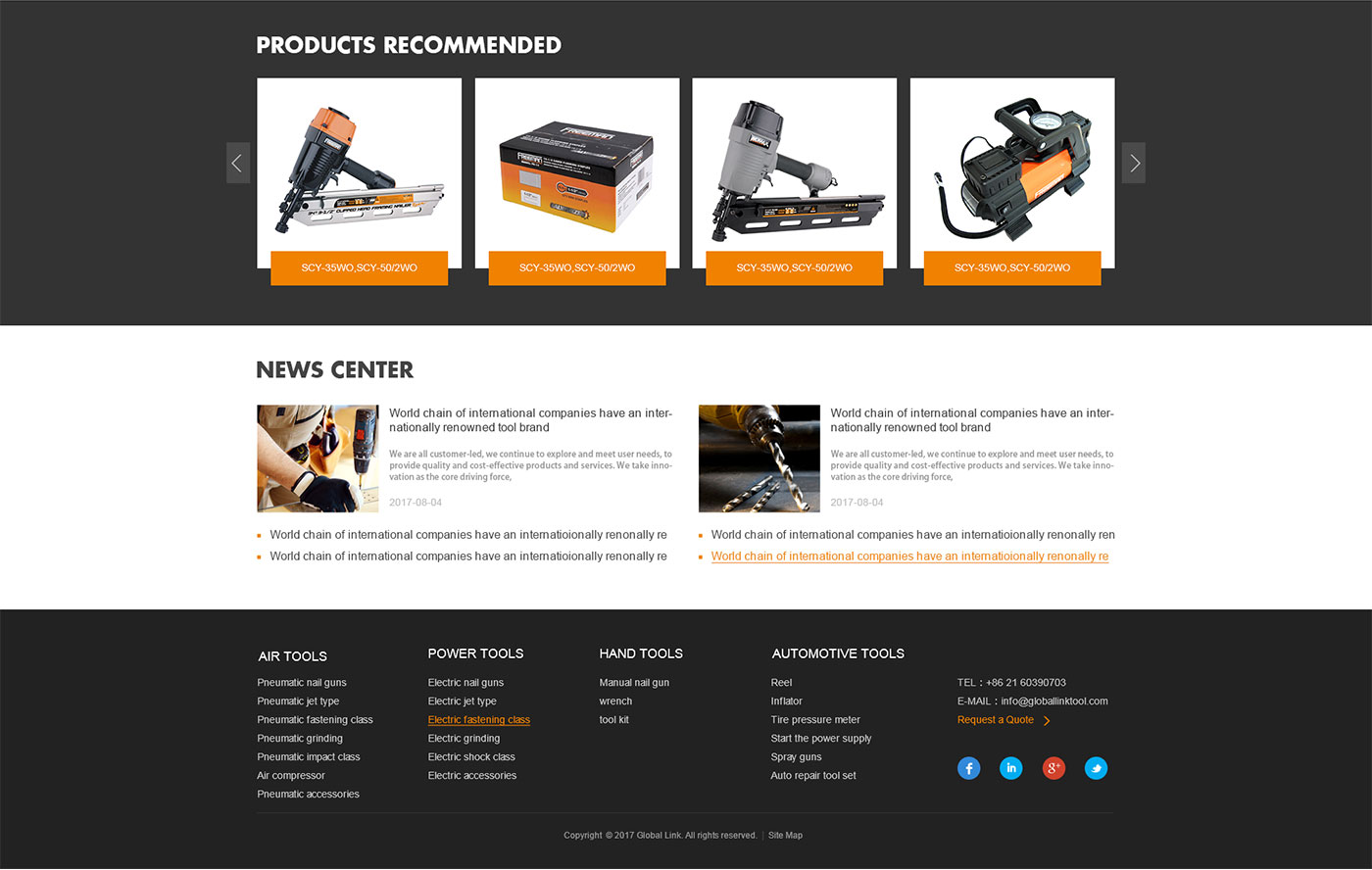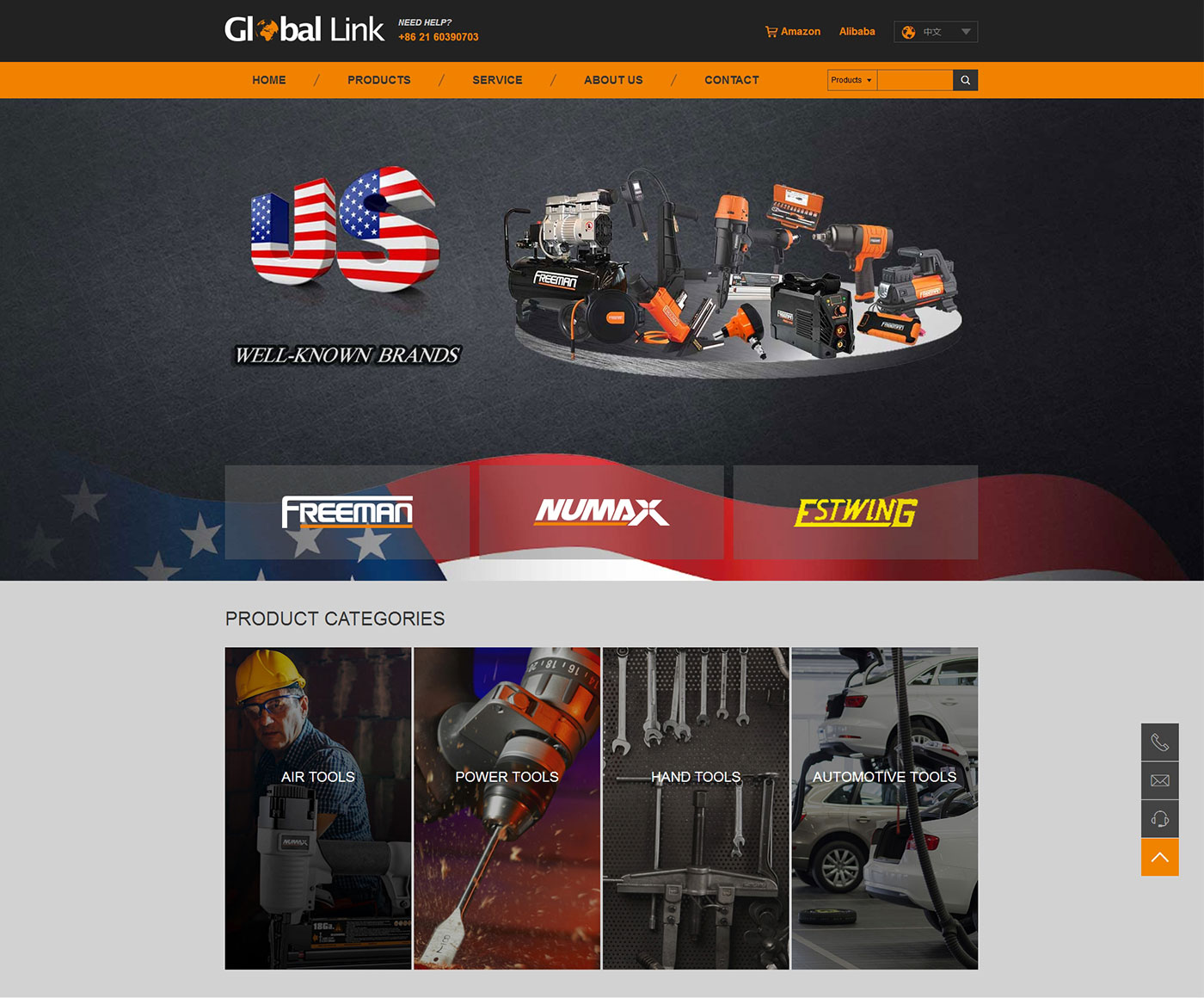 世鏈國際外貿網站使用群體海外客戶,歐美風格網站,整體顏色沉穩使人產生信奈產品安全感。