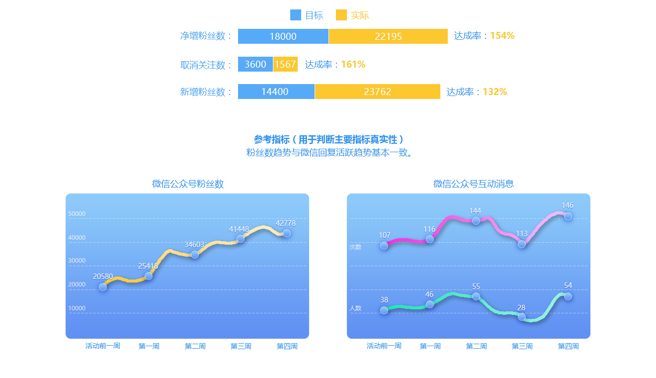 大地【金牌益起猜,圓貧困兒童體育夢】線上活動,凈增粉絲數、取消關注數、新增粉絲數均達成預期指標150%以上。活動閱讀量達成率252%,達成預計指標。人均打開活動頁面次數4.06次,活動參與的活躍度較高。
