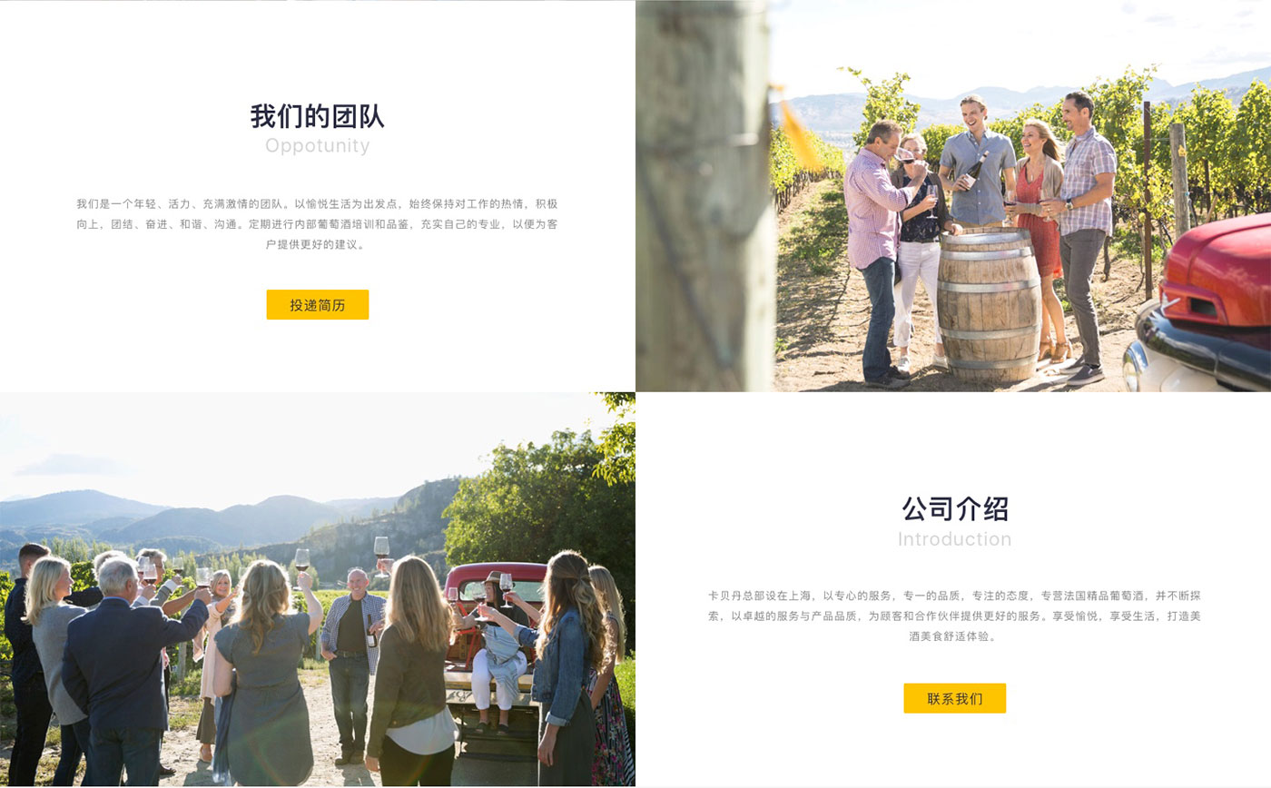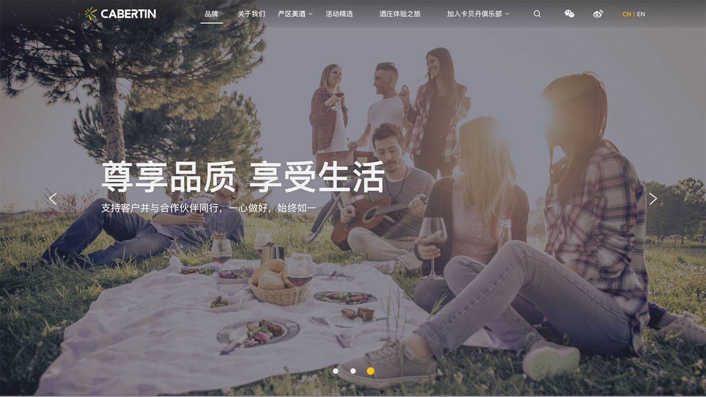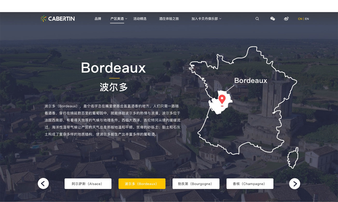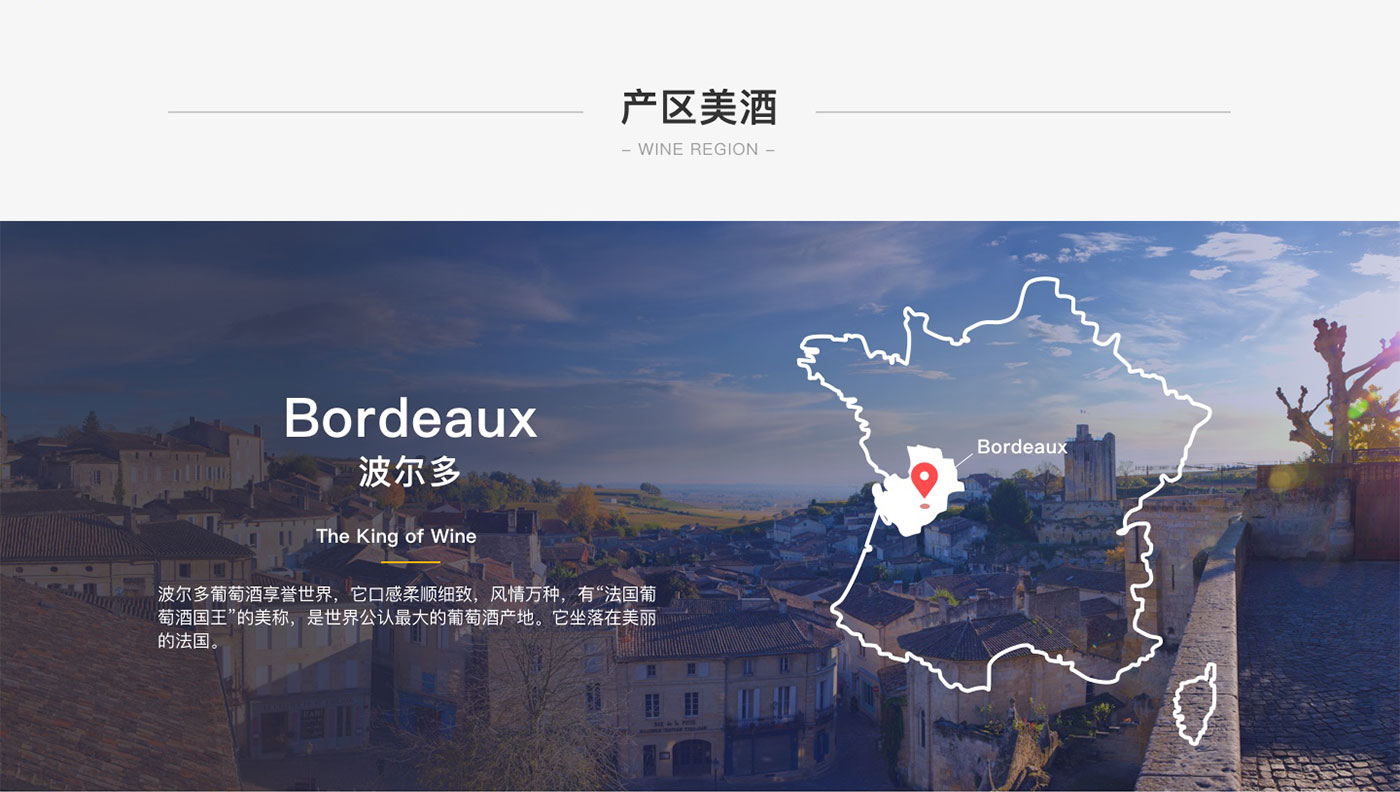 卡貝丹秉承以專心的服務,專一的品質,專注的態度,專營法國精品葡萄酒,并不斷探索,以卓越的服務與產品品質,為顧客和合作伙伴提供更好的服務為宗旨。網站的整體風格以體現品牌的實力以及產品的多樣性,高品質感為主,并通過大圖的處理和文字精準的定位來強化卡貝丹紅酒品質感和高性價比,使得網站整體呈現的視覺效果不僅高端、大氣,而且更顯國際化。
