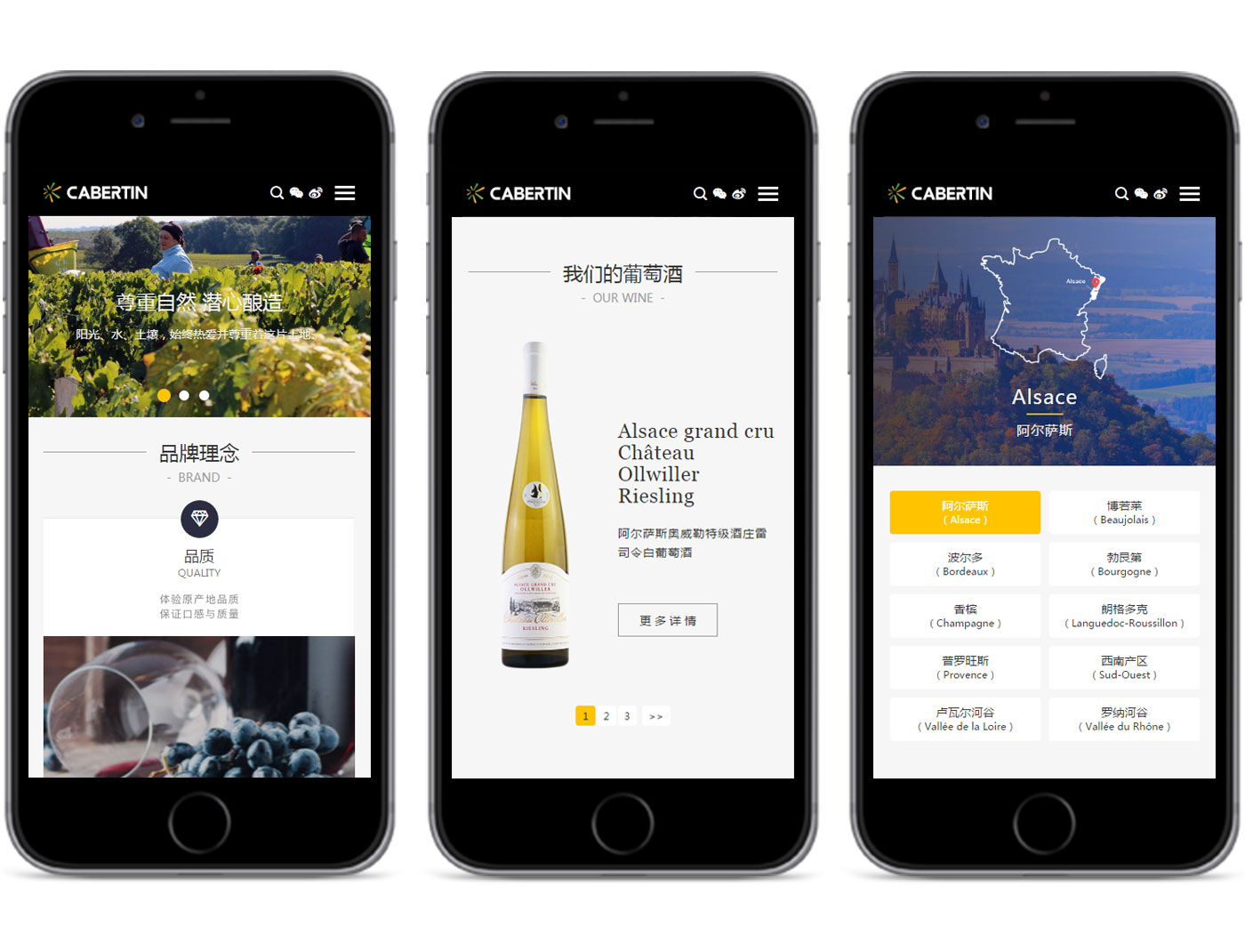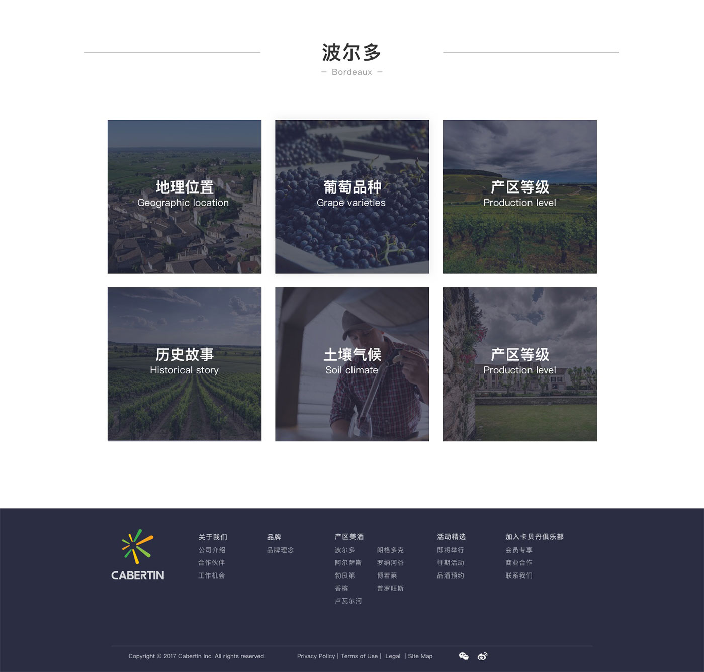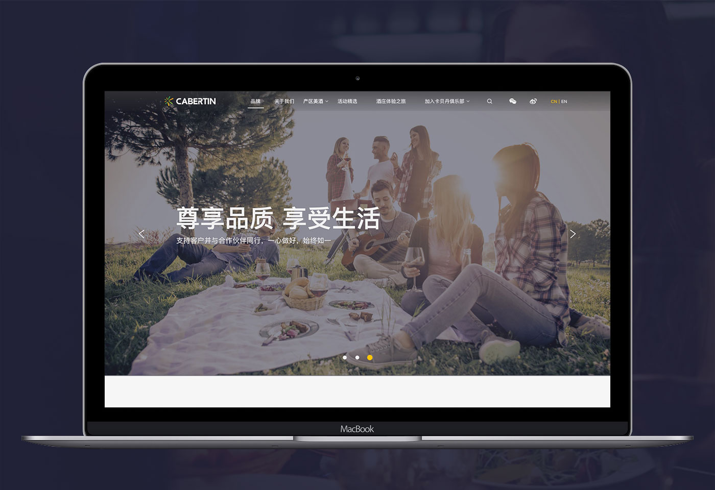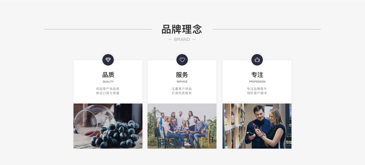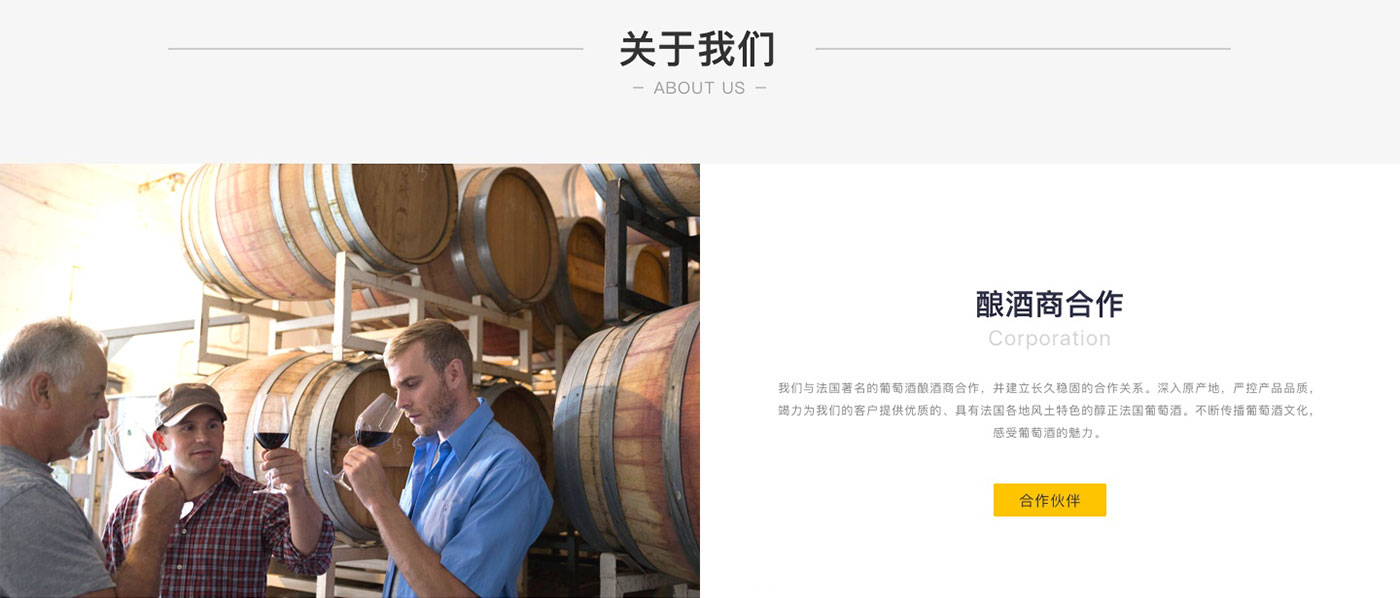 卡貝丹秉承以專心的服務,專一的品質,專注的態度,專營法國精品葡萄酒,并不斷探索,以卓越的服務與產品品質,為顧客和合作伙伴提供更好的服務為宗旨。網站的整體風格以體現品牌的實力以及產品的多樣性,高品質感為主,并通過大圖的處理和文字精準的定位來強化卡貝丹紅酒品質感和高性價比,使得網站整體呈現的視覺效果不僅高端、大氣,而且更顯國際化。