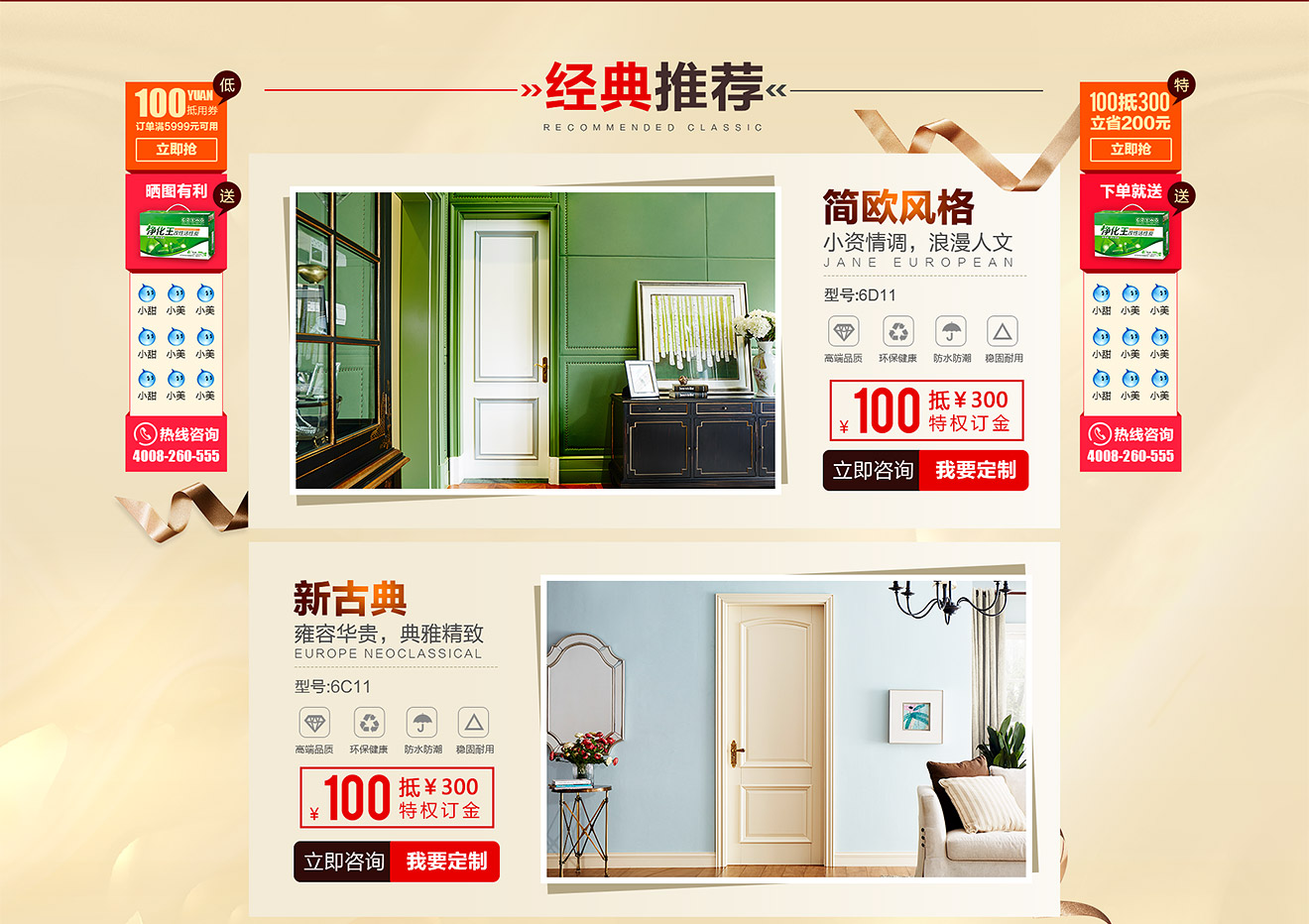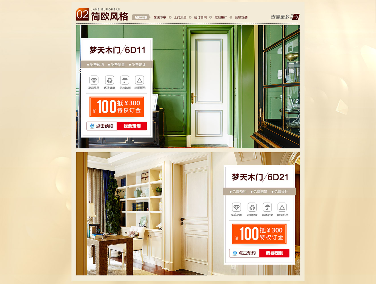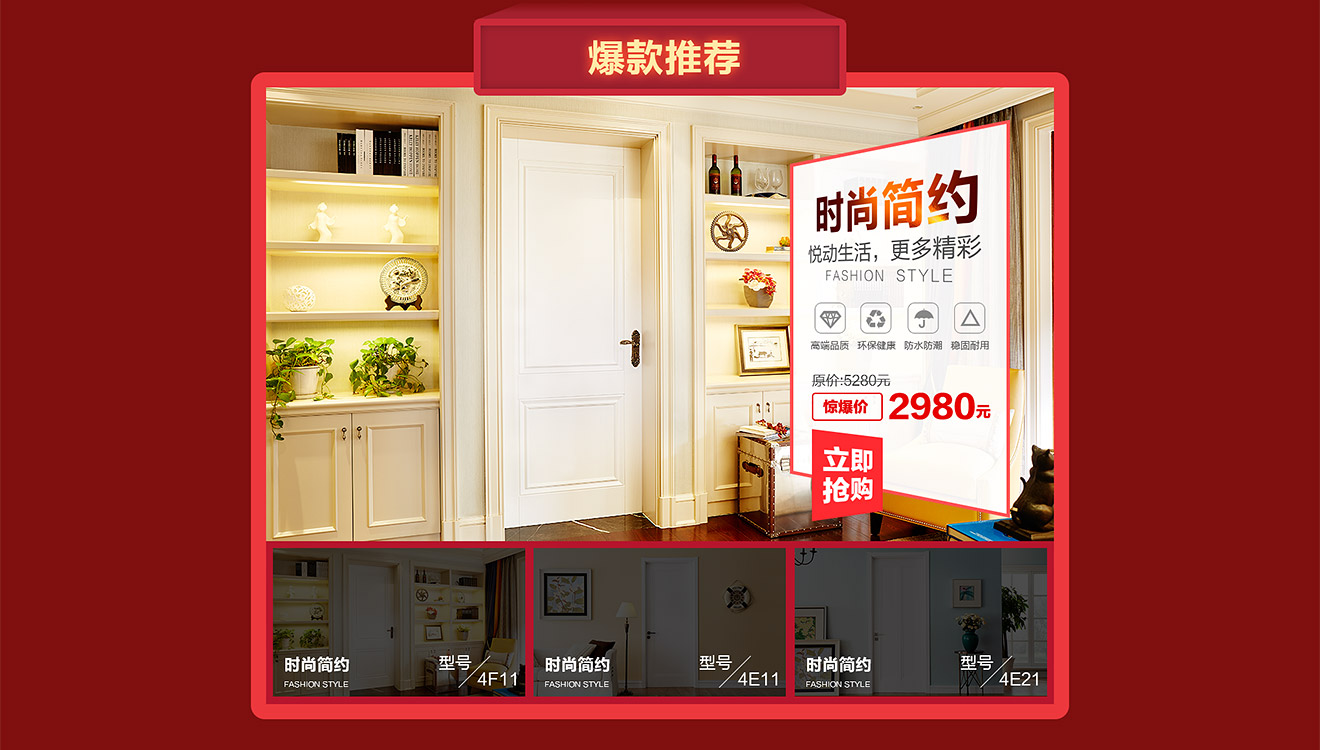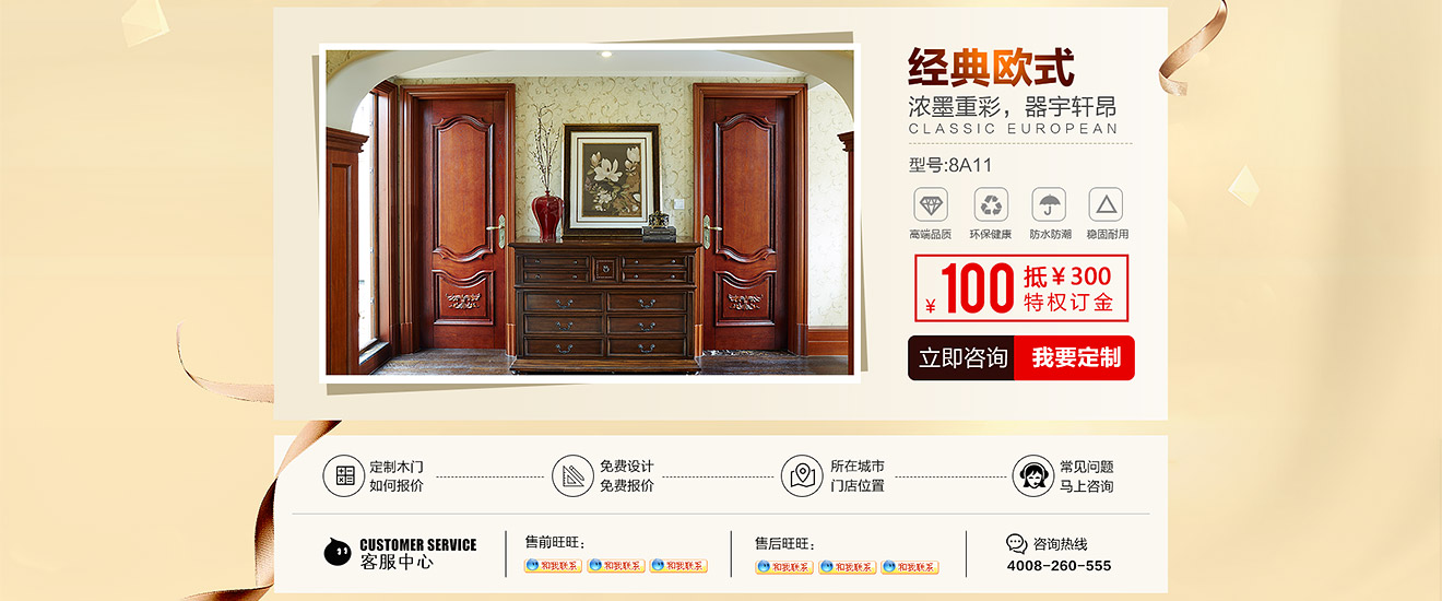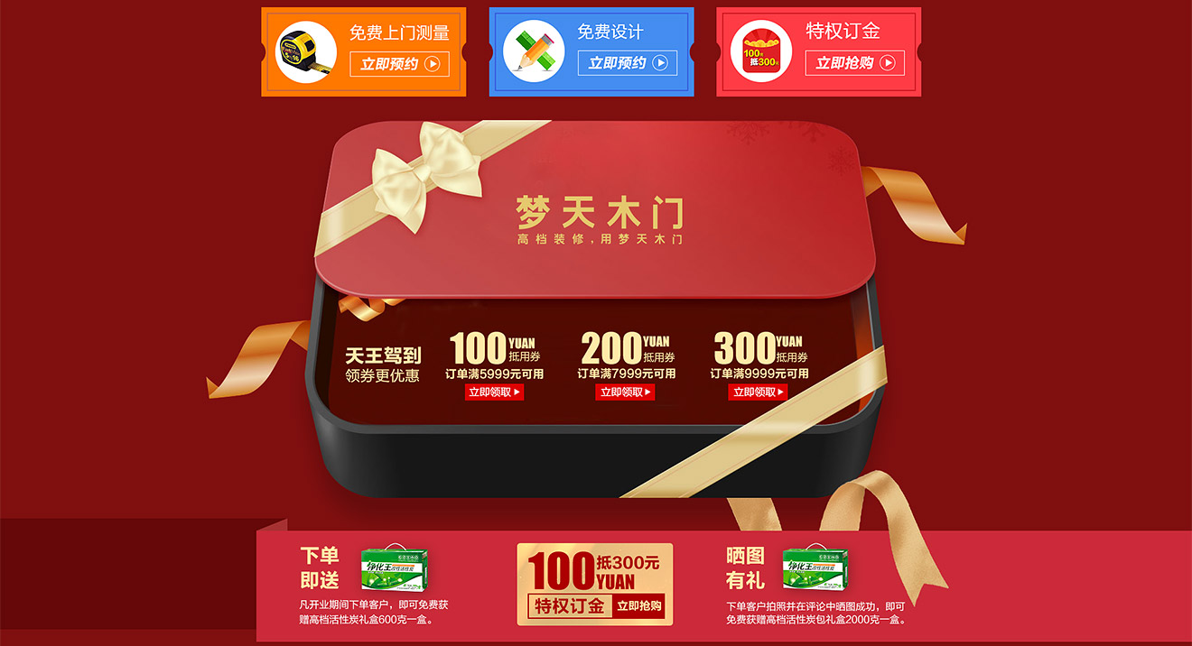 助騰服務于夢天木門天貓官方旗艦店,從無到有整個天貓店鋪的搭建,店鋪首頁到寶貝詳情和雙11活動的設計。 展示夢天木門的服務和高端木門的產品特色,店鋪突出夢天推出的特權定金及活動促進消費,提升夢天木門在群眾中高度門木的印象。