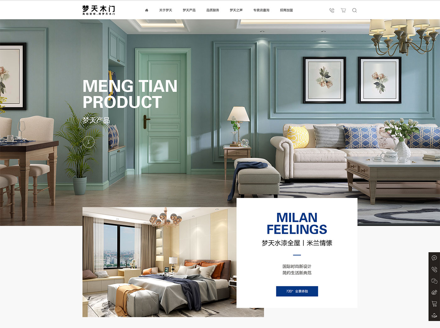 ?助騰服務夢天木門官網設計開發,通過與客戶的前期溝通和梳理,并通過整合以及重新編排內容,使信息的主次更顯而易見。你可以看到一個更簡約、直觀的但是卻不失內容和主題的完整的網站設計;用戶在瀏覽頁面時能夠更簡單的找到自己想要的產品和內容。減的是“冗雜”,加的是更符合用戶體驗的整體視覺和主次明了的清晰架構。